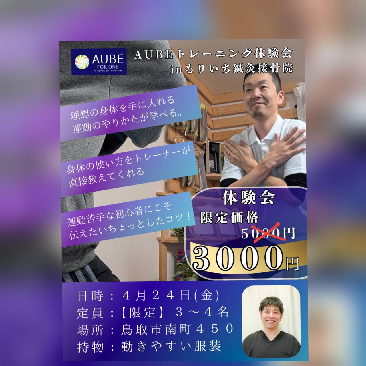 鳥取市の【もりいち鍼灸接骨院】さんの店舗をお借りして体を動かす体験会を開催いたします。